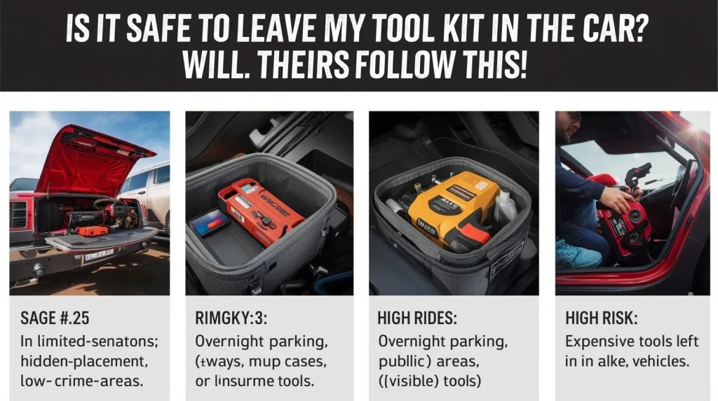 It is generally not fully safe to leave your tool kit in the car all the time, especially in visible or unsecured areas. However, in some situations, it can be reasonably safe if you take the right precautions.